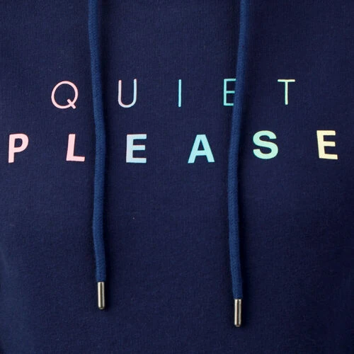 The Rainbow Letters Hoody by Quiet Please is made for women who want to integrate their passion for sports into their casual style. The figure-hugging hoody has a cool “Quiet Please” lettering on the chest, which immediately catches the eye thanks to the bright rainbow colours. Cuffs and hem, a kangaroo pocket and cosy fleece inside round off the arguments for the Rainbow Hoody and make it indispensable for your everyday life. And of course we’re not forgetting comfort. The loose, slightly figure-hugging fit hugs you comfortably and the soft cotton fabric makes the hoody ultra-comfortable. Try it on now!